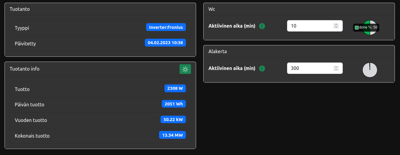 automaattisesti päälle omien paneelien tuottaman sähkön mukaan. Laskentaan otetaan mukaan